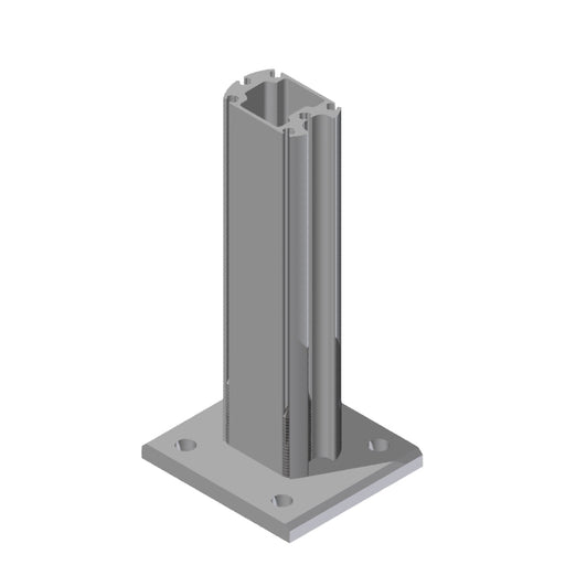 397 auf LagerAufsteck Dübelkonsole, Alu blank für BSG-Säulen 60 mm bis GH 2030 mm Höhe 350 mm Bodenplatte 90x100 mm 4 Löcher für max. Ø 8 mm FBN-Bolzenanker Li...
